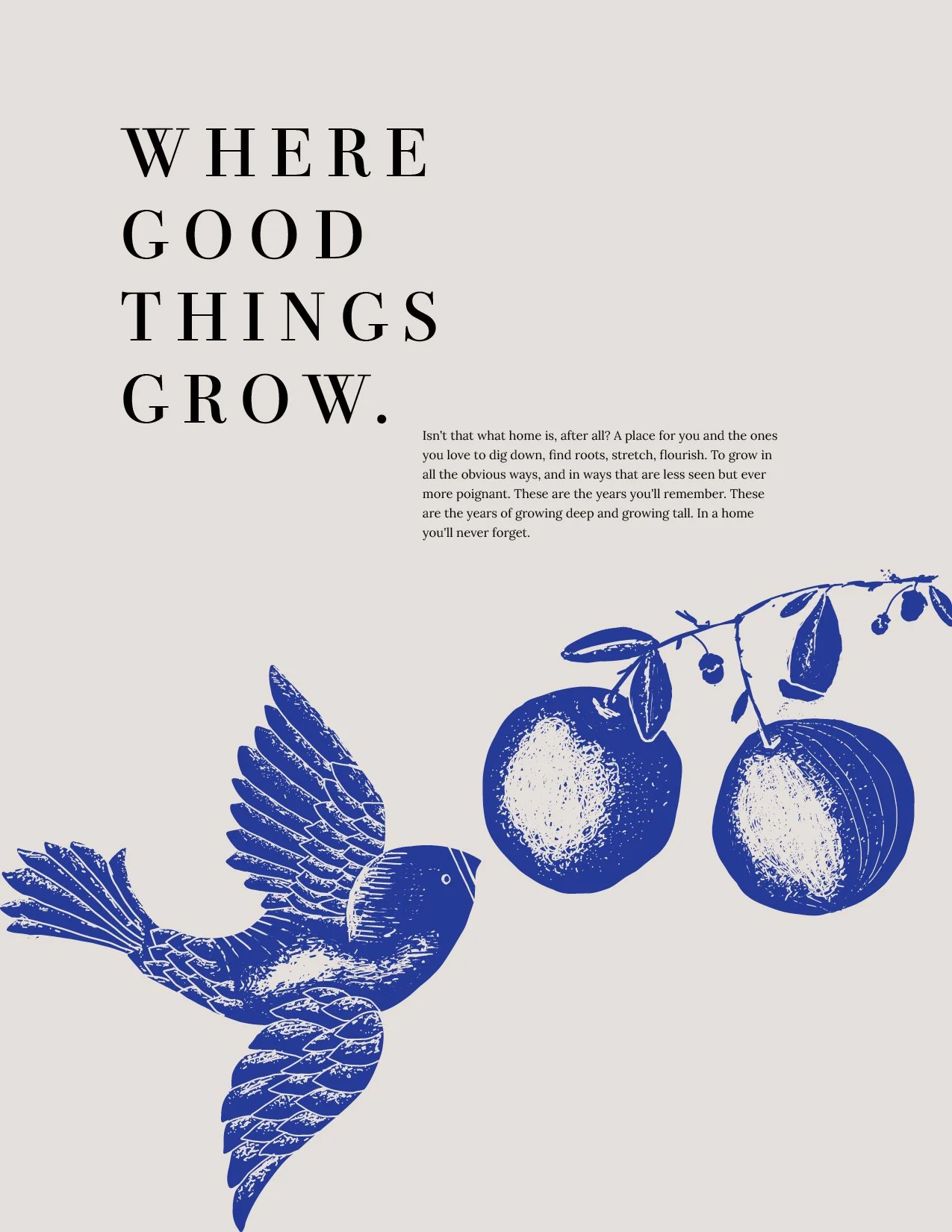 Groves Town Homes were designed to be beautiful and young and fun, but entirely attainable for real people living real lives. I wrote the language to resonate with our primary target audience - up and coming families, young families . We wanted them to think of these apartments not as just rentals, but as places they could call home for some of the best and dearest years of their lives, where they raised little humans and dreamed big dreams. Of course, thats what a grove is - a place where good things grow.