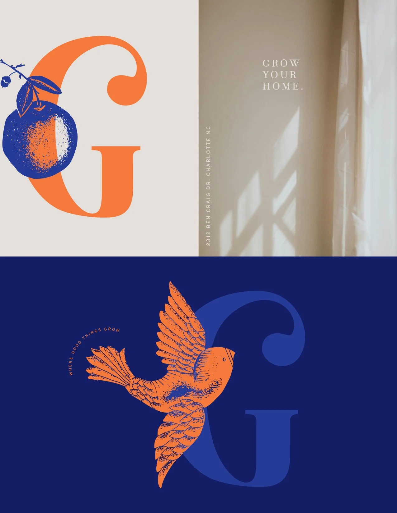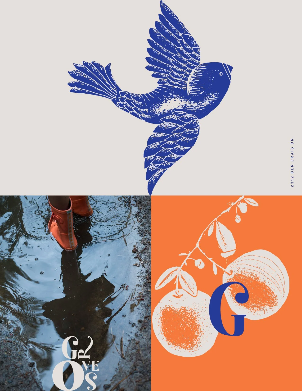 I designed a set of two artisanal, hand drawn illustrations – a young bird in flight and a branch of citrus fruit, both reminiscent of springtime and seasons of growth. These were used in different configurations across various collateral.